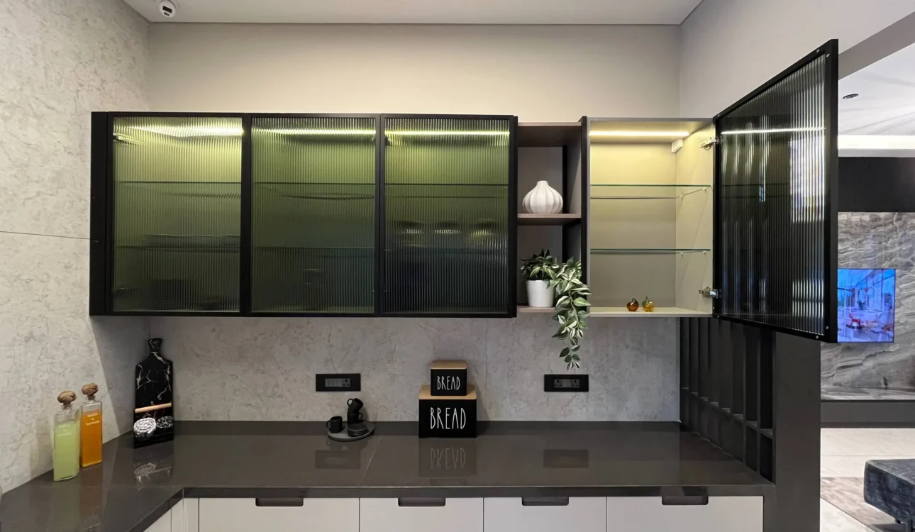 This luxury modular kitchen brings together cutting-edge design and everyday functionality, perfectly suited for contemporary homes. The overall layout follows an L-shaped configur...
